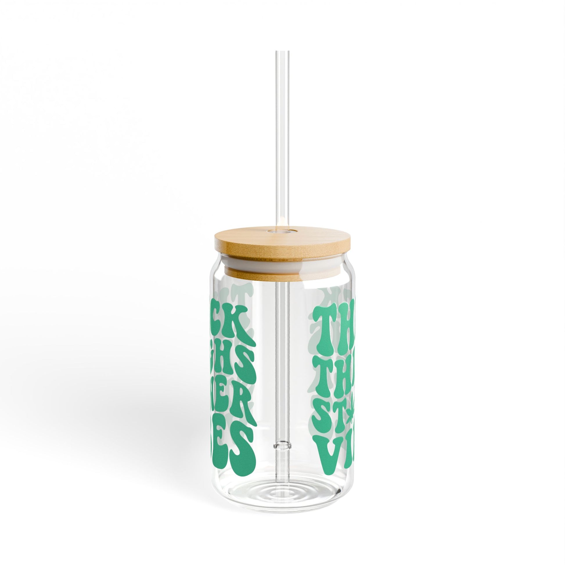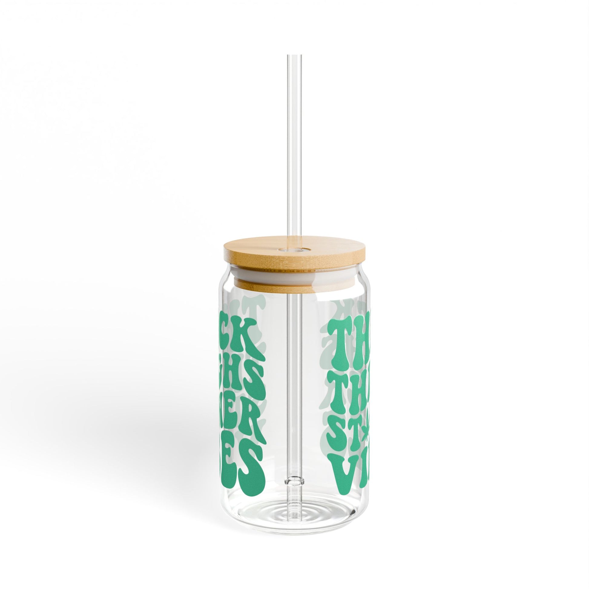 Our Thick Thighs Stoner Vibes glass cup is made from durable clear tempered glass and holds 16oz of your favorite drink: iced coffee, juice, cocktails, or whatever you’re pouring up.